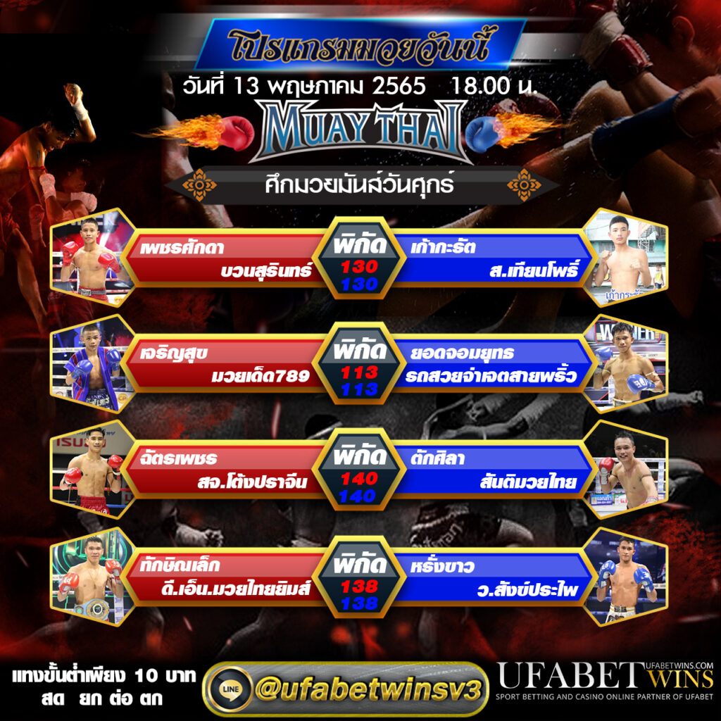 โปรแกรมมวยวันนี้ 13 พ.ค. 2565 เวลา 18:00 น.